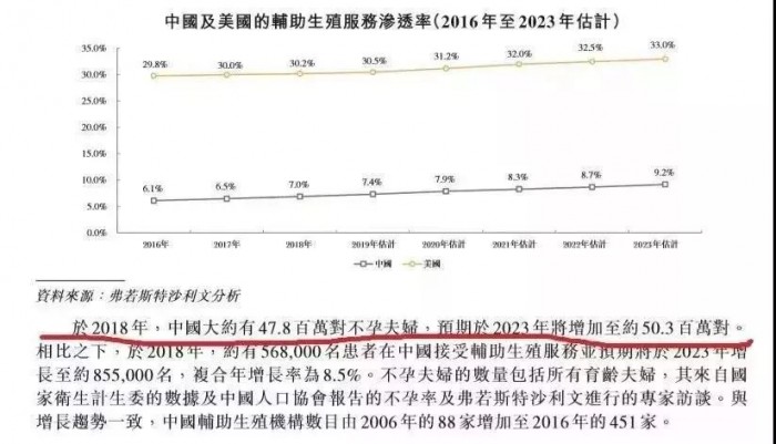 调查数据显示,近年来我国不孕不育的患病率呈逐年上升和年轻化趋势。2018年中国大约有4780万对不孕夫妇,预计于2023年将增加至约5030万对。占育龄人口的12.5%,即每8对夫妇中就有一对面临生育困境。