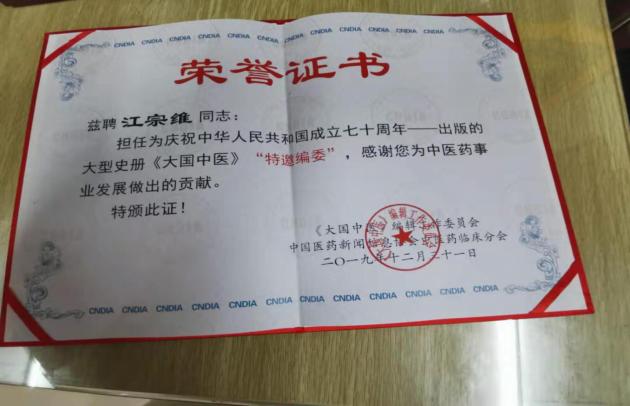 五千年历史文明源远流长、子孙繁衍、泱泱大国,都是世代祖先利用国医国术之精辟来为我们的世代繁衍保驾护航,中医药是我们民族的瑰宝,作为一名中医传承人,他的性格里,其实只有一种纯粹的东西,在温暖外表的背后,是一种执拗,一种倔强,那就是“中医的态度中医不能丢,辨证论治,五行生克,阴阳气血,子午流注,这是文化,是祖祖辈辈一直坚守的阵地。是每一次的平等对待和全身心付出,才成就了这位普通医生的人格魅力,江宗维用医术,更用仁心,维护群众的健康,为中医中药的繁荣和健康做出了重大的贡献,让中医事业有了暖化人心的“温度”。