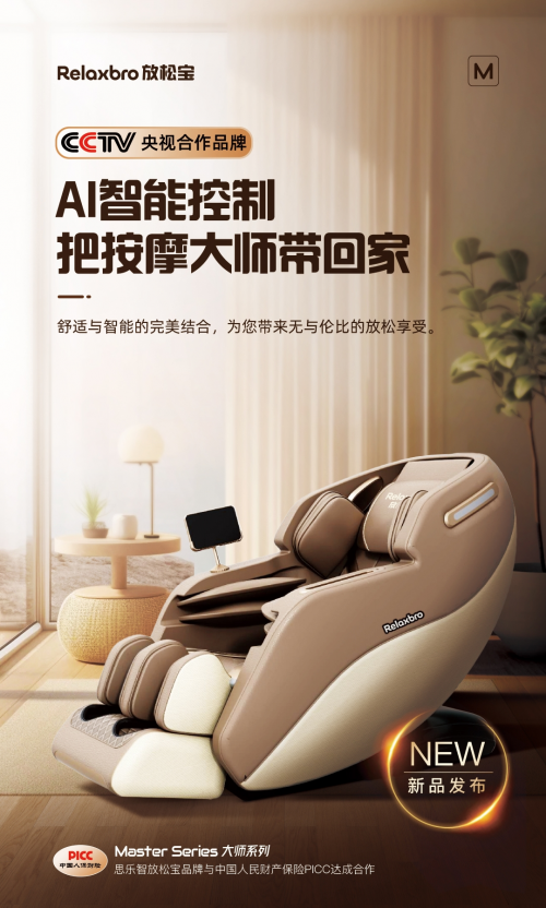 近日,备受瞩目的思乐智旗下品牌“Relaxbro放松宝”盛大发布了其最新力作——RB-M510,RB-M512,RB-M525,RB-M535系列大师椅,这款按摩椅不仅采用了零重力设计,让用户仿佛置身云端般的轻盈舒适体验,更搭载了特调大师程序和3D仿生机械手,实现了专业按摩大师级别的按摩享受。这一切无疑将给用户带来一次完美的按摩体验。