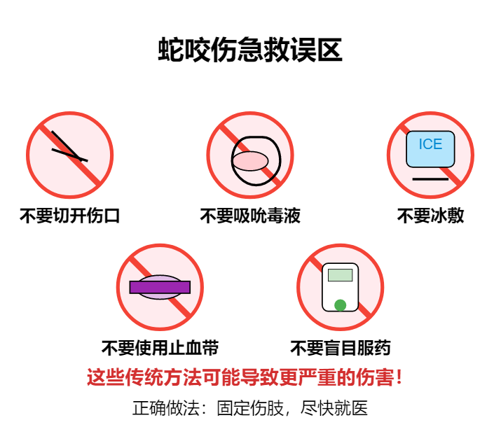 不要用嘴吸吮毒液:这会使毒素通过口腔黏膜进入救助者体内,造成双重伤害。
