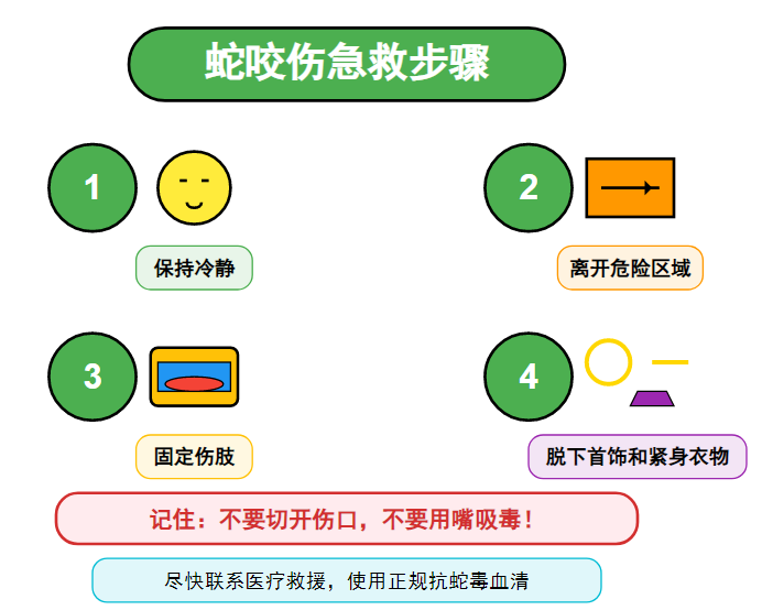 万一不幸被蛇咬伤,请按照以下步骤进行自救: