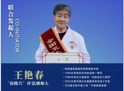王艳春,中医主任医师,中医师承指导老师,退休于铁岭市中心医院。1961年毕业后一直奋战在中医一线,把全部精力和心血都倾注到振兴发展中医事业中,在国家、省级医学刊物发表论文多篇,6次出席国际学术交流会。1981年她发现了“肩陵穴”,1984年获铁岭市政府科技成果一等奖,1986年获辽宁省科技进步奖三等奖。自1992年10月起享受中华人民共和国国务院颁发的政府特殊津贴。2024年王艳春传承创新的铁岭王氏肩陵针疗法获批铁岭市非物质文化遗产保护项目。2025年3月王艳春被授予“全国卫生健康系统先进工作者”称号。