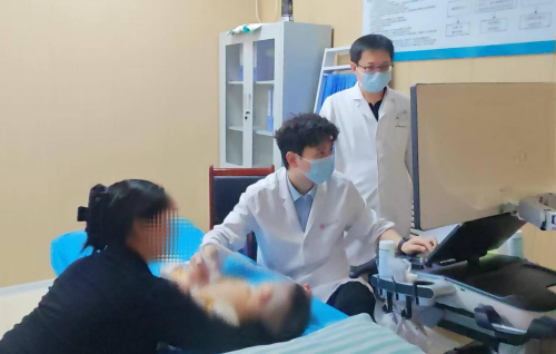 在超声检查区,河北生殖妇产医院董凤群教授超声团队成员王峰医生耐心为多名儿童进行心脏超声检查。一名两岁幼儿被检出动脉导管未闭合并卵圆孔未闭,另一名儿童则被诊断为冠状动脉肺动脉瘘。王峰医生分别就随访计划和注意事项向家长作了详细解释。一位孕妈妈在胎儿心脏超声检查中发现宝宝存在膜周部室间隔缺损,情绪一度低落,王峰医生用温和的语言向其讲解了病情特点及预后可能,帮助其缓解焦虑。