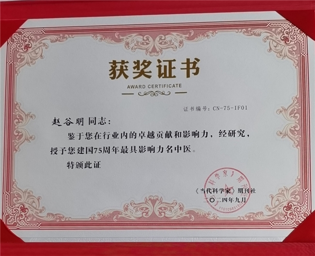 2024年,中医专家门诊值班中的一天,赵医生接诊了一例83岁的老太太,她的脉搏每跳动一次便停一次,是典型的雀啄绝脉,几千年来历代医家认定此类脉患者绝无生路,但老人是一位老年丧子的不幸老人,现和一位孙女生活着。老人发愁她若去世孙女孤身一人如何生活,悲痛不己。于是赵医生大破常规,设计了新的医疗处方。十五剂中药使老人获得痊愈,脉博跳动数分钟而没有一次结代脉。打破了几千年来绝脉不治的禁咒。使中医学又一次大放异彩。